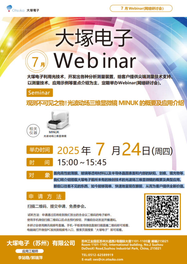 大塚電子(蘇州)有限公司產(chǎn)品講解:ELSZneo、nanoSAQLA,OPTM,SF等